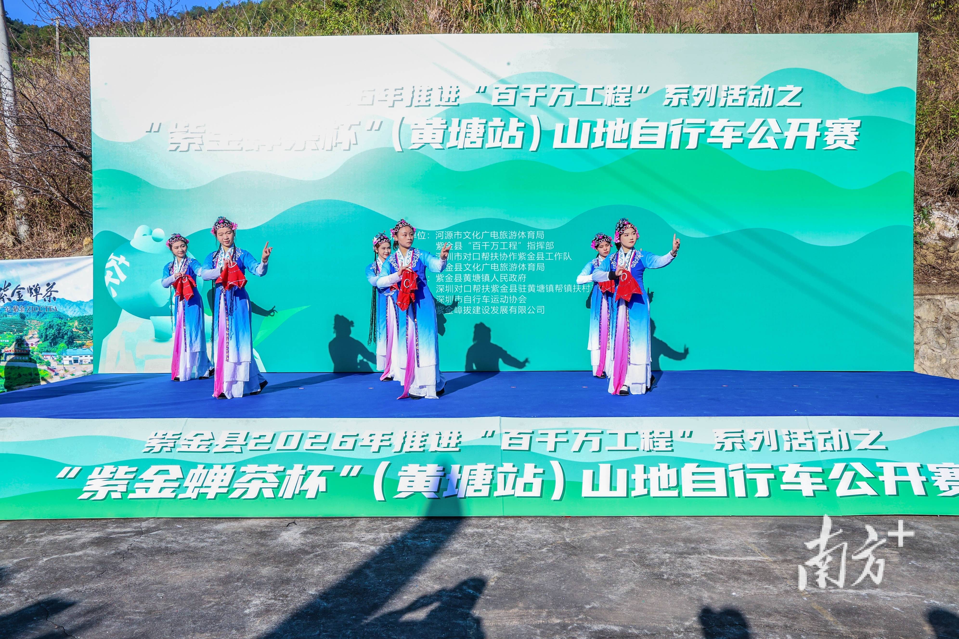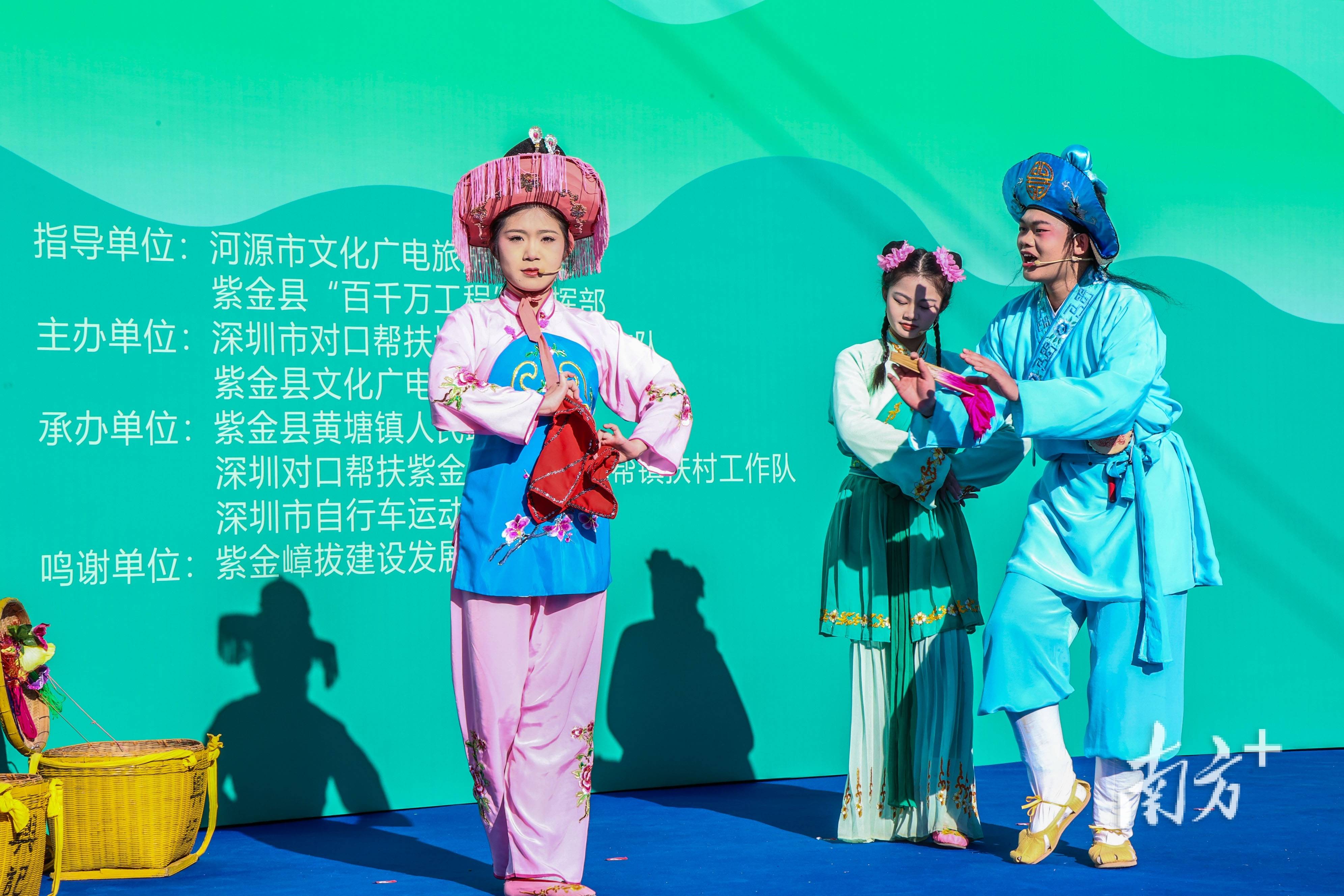赛事暖场环节中,来自紫金县花朝戏传承发展中心的演员们,为现场观众带来了国家级非物质文化遗产——花朝戏的表演。这一源于民间风俗、以客家方言吟唱的戏曲形式,为现代体育赛事增添了浓厚的文化底蕴。