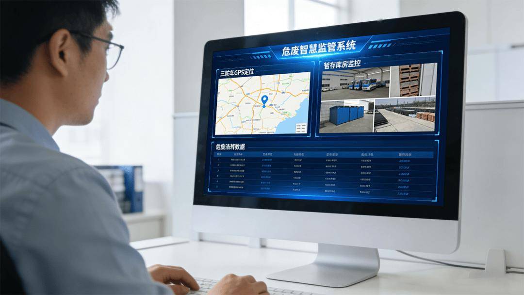“三防车”和“暂存柜”是硬件的创新,而让整个体系“活”起来的,是背后的智慧监管系统。咸阳市建立了“社会源危险废物信息管理系统”,并为此配备了“天眼”网络: