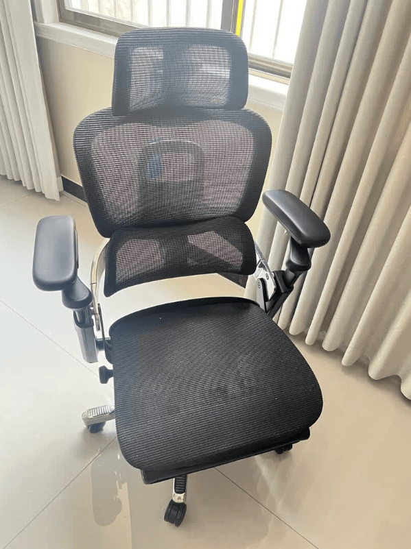 安全度:框架和底盘结构稳固,靠背与腰枕调节平滑顺畅。整体承重合理,久坐或后仰时椅子稳定性良好,日常使用安全性有保障。
