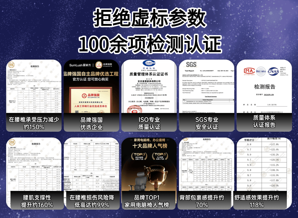 安全度:在安全和耐用性上,夏草木Fit2的规格明显高于常规水平。整椅通过了欧美多国权威认证,并且获得CCTV展播推荐、入选品牌强国优选工程,属于少数在技术和品质层面被反复验证过的国产人体工学椅。