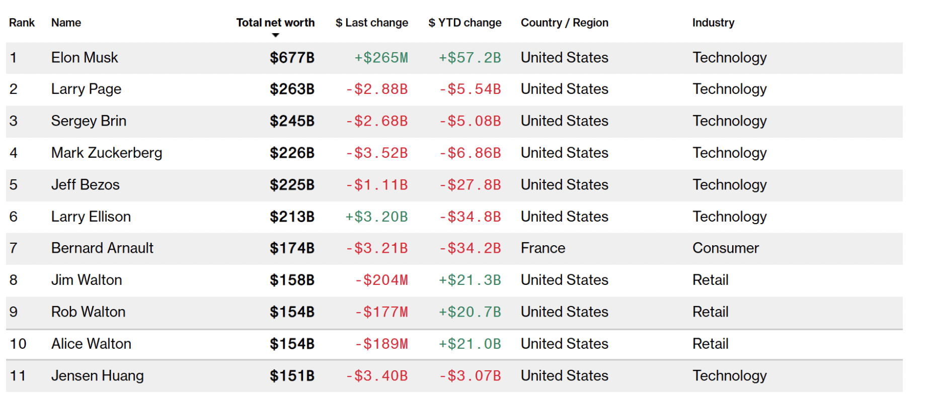 这些变化表明,虽然科技领域的大佬们仍占据富豪榜前十名多数席位,但是其财富缩水已经成为普遍现象,而日常消费领域的财富正在回升。